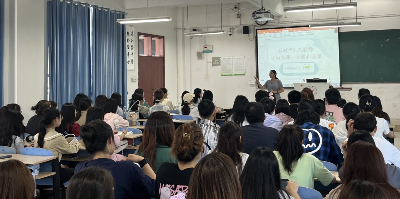 此讲座使同学们对幼儿教师职业口语实践运用和幼儿园管理与教学有了更加全面深入认识,讲座得到了学前教育专业师生的一致好评。“园长进课程”活动也是安徽省质量工程项目线上线下混合式课程《幼儿教师口语》课程建设的重要举措之一。(文/朱宁宁、钱盈 图/韩湘 初审/郑艳 终审/蔡广)