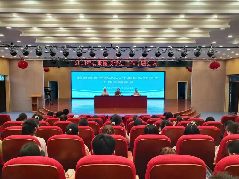 为切实做好暑期留校学生的教育管理与服务,6月30日上午,教师教育学院在艺术楼报告厅召开2023年暑期留校学生工作专题会议。学院党委书记朱玉票、副院长蔡广、相关班级辅导员及暑期留校学生参加会议,会议由学院党委副书记左劲中主持。