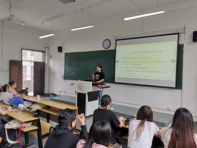 2023年9月6日,教师教育学院在明德楼东2阶梯教室召开2024届学前教育专业教育实习、教育研习工作布置会。教育系主任甘超、专业教师朱小泉、张平,辅导员曾鹏、以及学前教育专业20级本科、22级专升本全体学生参加了会议。会议由甘超主持。