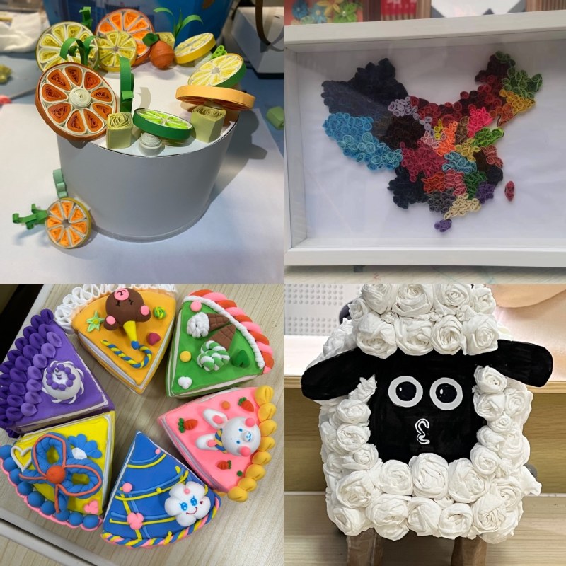 本次活动是课程作品展,亦是应用型课程开发与建设项目《学前儿童玩教具制作》的阶段性成果。基于师范专业认证理念与要求,课程教学中以理论知识为基础,以职业能力为导向,提高学生运用所学知识解决实际问题的能力。本次展览中,60%的作品为单项材料玩教具,如折纸、剪纸、衍纸等纸类作品,“蛋糕”“鲜花”“火锅”等泥材料作品等,一项项精美的单项材料玩教具的制作展现了学前专业学生扎实的基本手工知识和技能。同以往的课程作品展相比,本次展览增加了综合玩教具的数量比例,共有30余件。如“认识天气”“读懂表情”“感受四季”“玩转数字”“我会五子棋”等游戏化的教育教学教具材料,还有“烧烤店”“绘本电视台”“斜挎背包”等废旧材料综合作品。综合玩教具大多为小组合作完成,同学们构思设计、分工规划,将保教知识融入到手工制作项目当中,体现了专业特色与教学能力。