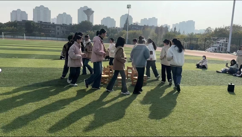 2021级学前教育专业学生在第二运动场,拟大班幼儿为对象,以促进幼儿“大肌肉动作与协调性发展”“体能发展”“团结协作能力提升”“提高社会交往能力”“积极愉悦的情绪体验”等为目标,开展了一场户外游戏活动的设计改良体验,游戏有“手忙脚乱”“一元五毛”“不倒森林”“袋鼠跳”“踩气球”“垫脚传递”等,活动开展过程中,同学们将本学期在幼儿园见习中的所获所得,以项目驱动式,小组为单位,讨论与交流设计游戏活动,并将其投入于实践环节,做到了全员参与设计、全员体验游戏活动。活动结束后,学生回归课堂,即时反馈实践活动从游戏设计、游戏组织、游戏材料准备再到游戏开展效果等内容中的经验与不足,进一步联结了理论与实践之间的桥梁。