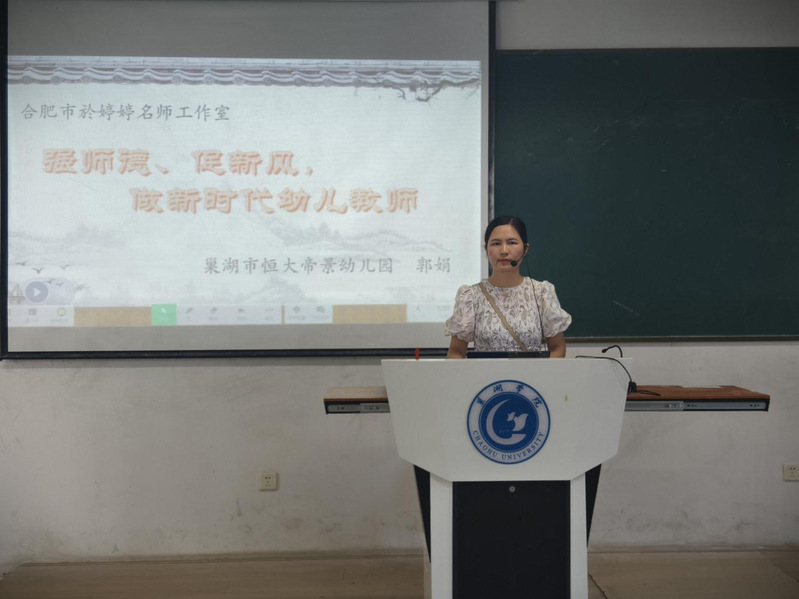 为进一步贯彻OBE教育理念,夯实“U-G-S”协同育人机制。教师教育学院学前教育专业以课程教学改革为抓手,充分利用巢湖市中心幼儿园这一省级教育实践基地的优质教育资源,邀请知名园长和骨干教师团队,围绕幼儿教师“师德师风”和“专业发展”两大主题,结合幼儿园一线教学工作实践,为2021级学前教育专业本科生开展系列专业讲座和现场观摩活动。6月13日、6月20日及6月21日下午,合肥市“於婷婷教育名师工作室”骨干教师向兆林、郭娟以及李婉莉,在慎思楼北203教室分别进行了三场主题讲座,教育系主任甘超、专任教师张平主持活动,2021级学前教育专业全体学生参加。