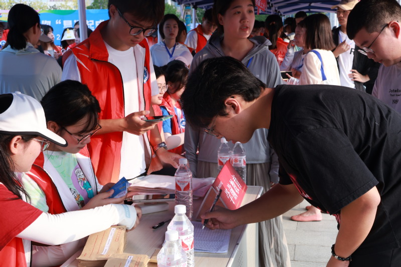 以心迎“新”,贴心服务。9月7日上午7:00,全体新生班级辅导员以及150余名迎新志愿者初迎朝阳等候新生的到来。迎新现场,志愿者们与高温烈日同行,穿梭于校园的各个角落,从校门口到报到处,再到宿舍区,为新生搬运行李、宿舍登记、答疑解惑,帮助新生安全有序完成报到。虽然天气炎热,但是志愿者们不惧烈日,全程陪伴,被汗水浸湿的红马甲生动诠释了“奉献、友爱、互助、进步”的志愿服务精神。