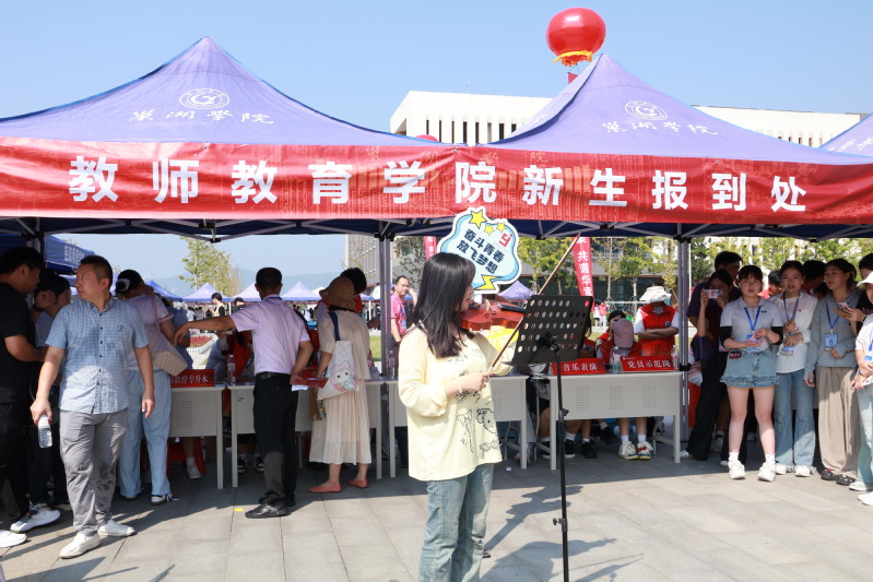此外,为营造热情温馨的迎新氛围,音乐表演专业的志愿者还现场演奏了欢迎曲,悠扬的小提琴声吸引众多新生及家长驻足停留,充分彰显了学院文化特色和专业优势。