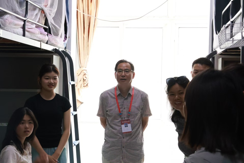 聆听“新”声,暖心指导。报到当天,学院党委班子带领2024级新生辅导员深入宿舍,与新生们“拉家常、话学业、展未来”,耐心倾听同学们对大学生活的规划和憧憬,勉励大家珍惜大学时光,学好专业知识,锤炼过硬本领,以积极的心态和良好的面貌拥抱新生活。领导老师们的温暖关怀让新生们深受鼓舞、倍感振奋,纷纷表示一定会珍惜学校创造的良好环境和学习条件,积极进取、奋发有为,不辜负父母、师长寄予的厚望。