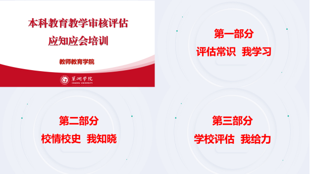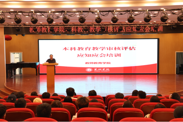 为确保全院师生全面了解审核评估工作要求,进一步加强学习统一思想,增强责任感和使命感,以昂扬的精神风貌高质量迎接新一轮本科教育教学审核评估,教师教育学院开展本科教育教学审核评估应知应会专题培训,培训分为教师、学生两个专场依次进行。