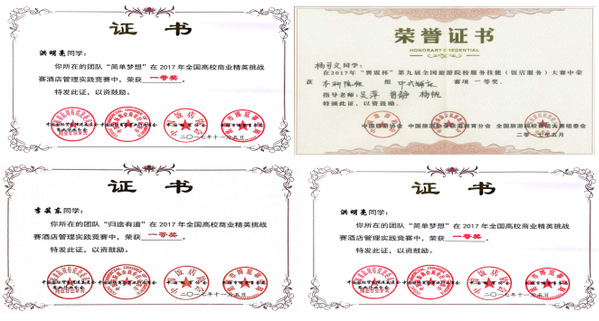 ◆近年学生获得第三届全国导游大赛铜奖和最佳人气奖;全国饭店服务技能大赛一等奖3项、二等奖1项;安徽省茶艺比赛团体二等奖2项;全国高校商业精英挑战赛一等奖4项等多项国家(省部)级学科竞赛奖项。