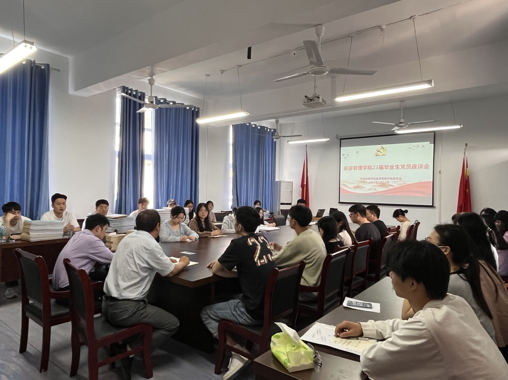 5月23日,旅游管理学院党委在明德楼党员活动室开展2023届毕业生党员离校教育。院党委主要负责人洪作奎、院党委副书记邓其志、学生支部书记马其霞、曾鹏、黄维兵和毕业生党员代表参加会议。