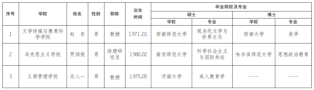 根据《金年汇官方入口引进高层次人才及团队实施办法(修订)》(校字〔2019〕146号)文件要求,经考核,拟录用赵东等3人,现予以公示。公示时间为2021年6月24日至2021年6月30日。公示期间如有异议请与人事处、纪委办反映(电话:0551-82362063 82360369)。