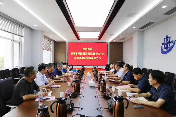 8月19日下午,校党委副书记阮爱民带队赴中科院合肥物质科学研究院开展博士招聘交流,对接合作事宜。校办公室主任陈和龙、机械工程学院党委书记何照泽、信息工程学院副院长吴其林、电子工程学院副院长叶松、人事处副处长王倩陪同参加。一行得到中科院合肥研究院智能机械研究所副所长高理富,研究院研究生处处长李贵明、副处长徐伟宏、孙凌云等的热情接待。
