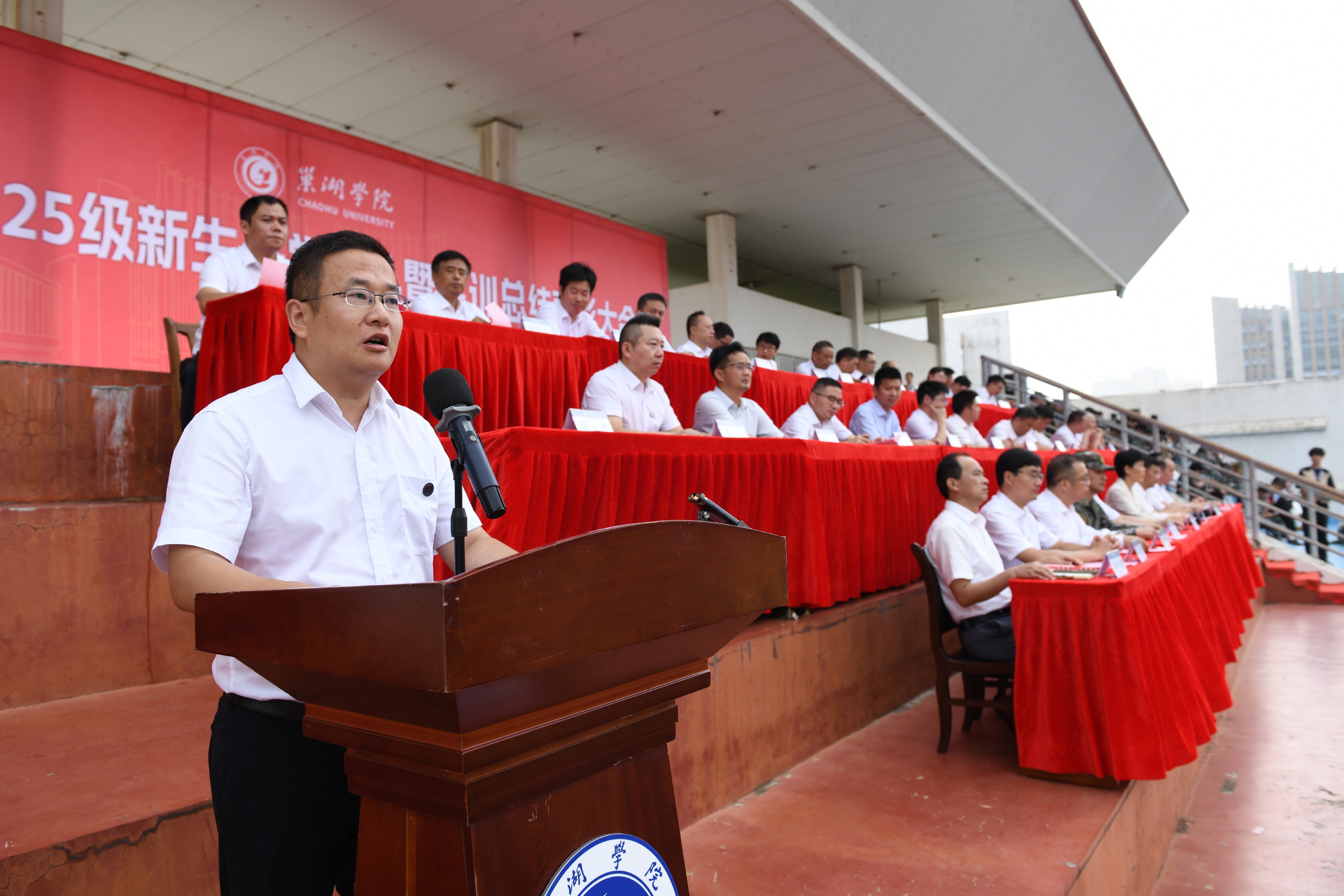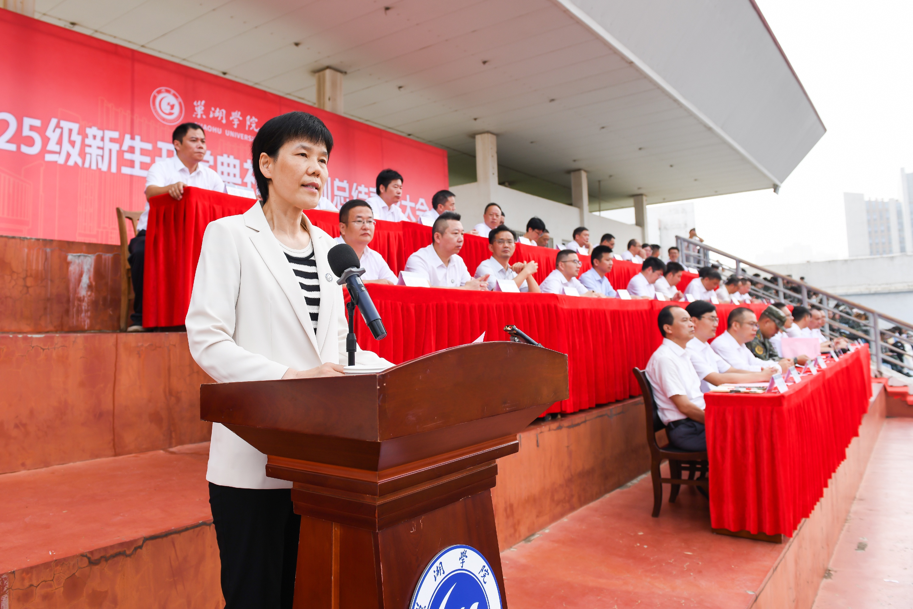9月28日上午,金年汇官方入口在第一运动场举行2025级新生开学典礼暨军训总结表彰大会。校党委书记周峰,校党委副书记、校长张莉,武警某部大队长彭森虎,校党委副书记宋立敏,校党委委员、副校长周祥、丁俊苗,校党委委员、纪委书记、监察专员钱锐,校党委委员、组织部部长柯应根,校党委委员、宣传(统战)部部长张连福出席大会。学校相关职能部门主要负责人、各二级学院党政主要负责人、全体2025级新生及辅导员参加大会。大会由宋立敏主持。
