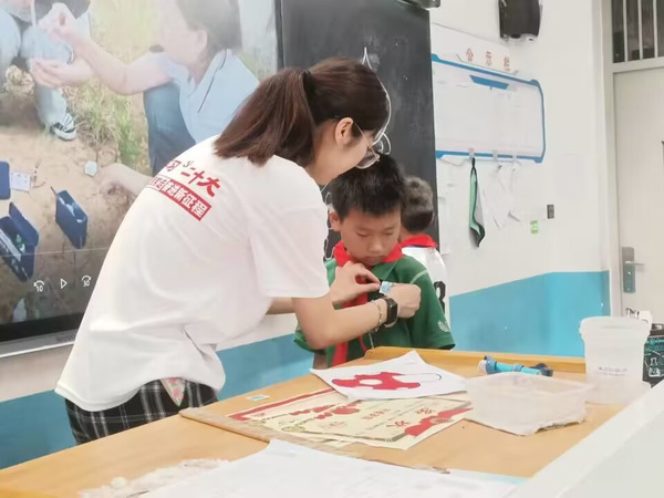 活动过程中,志愿者们还发放了“争做河小青 护河当先锋”活动的宣传单页和主题动画贴纸,小朋友们争先恐后地将贴纸粘贴在胸前,并纷纷表示要“争当河小青,保护母亲河”。