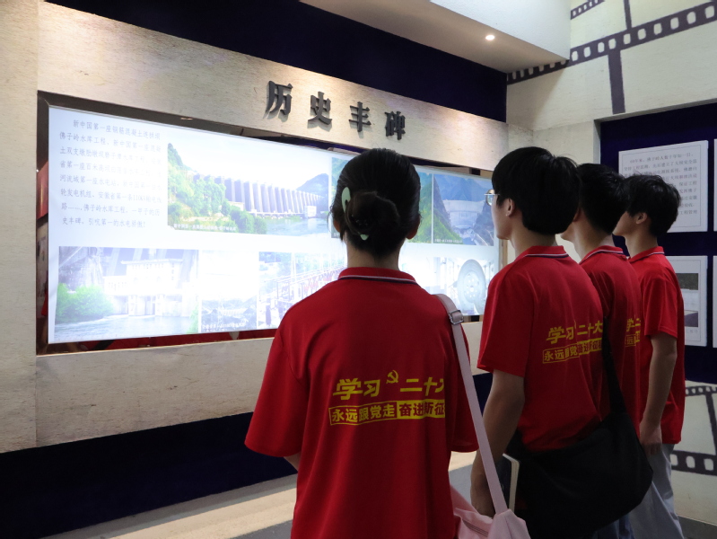 7月5日,小队前往佛子岭水库大坝进行考察,水库管理处的干事吴靖向队员们介绍了大坝的管理和维护情况。佛子岭水库1954年建成,至今仍然在农业灌溉、防汛抗洪、水力发电等方面发挥重要作用,站在巍峨的大坝顶端,队员们由衷赞叹老一辈工程建设者们克服千难万阻建成“新中国第一坝”的丰功伟绩,也对现在的管理者们科学统筹、精心维护,让大坝始终保持良好状态感到敬佩。