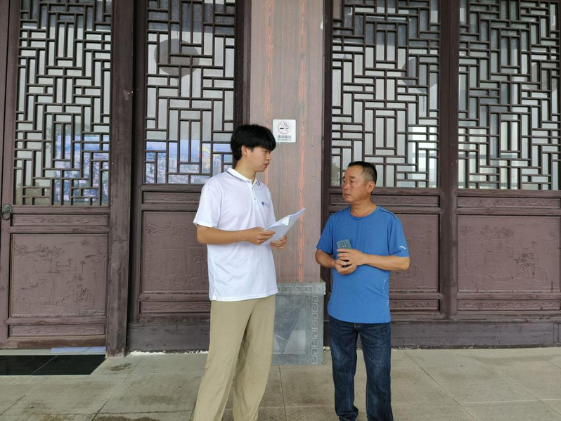 经典传承路漫漫,古韵悠悠续新声。7月3日,志愿者们来到陵阳镇开展走访调查。大家一边挨家挨户发放调查问卷,了解老百姓对非遗文化的认识和保护建议,一边耐心解答居民疑问,宣传非遗文化保护政策,生环学子“志之所趋,不怕艰苦”的风范得到了居民们的肯定和热情回应,他们纷纷表示对非遗文化有了更深刻的认识,也会为它的保护和传承贡献力量。
