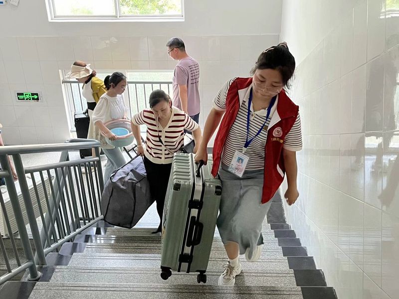 迎新现场,志愿者们指引新生按照报到流程办理手续,发放入学防骗提示单、学生手册和校园卡,帮助新生搬运行李、查找宿舍、熟悉校园,细心给他们答疑解惑,叮嘱新同学注意个人财物安全、宿舍用电安全,严防各类诈骗,“一对一”的贴心服务赢得了新生及家长的高度认可。迎新期间,学院党政领导齐聚新生报到处,与迎新教师、志愿者、新生及家长亲切交谈,勉励初入巢院的新同学尽快融入大学生活,并与学生家长进行充分沟通和交流,同时对迎新工作人员周到的服务工作给予肯定。
