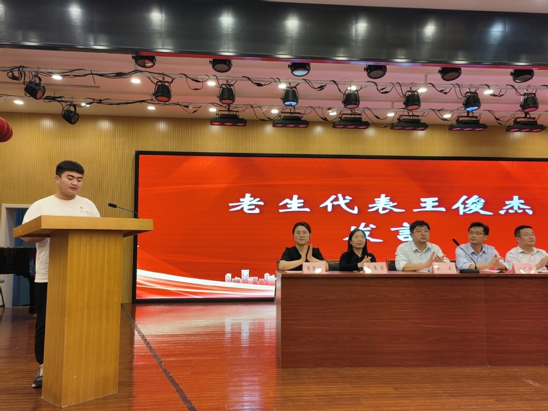 2020级生物制药专业王俊杰作为老生代表发言。他号召同学们要在大学生活中积极服务他人,闪耀青春活力,在志愿奉献中出彩,夯实专业基础,在科研上不断勇攀高峰,在新挑战下挺膺担当,做自强不息的生环骄子,做胸怀天下的巢院英才。