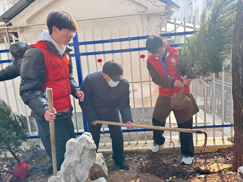 人勤春来早,植绿正当时。为大力弘扬“绿水青山就是金山银山”的绿色发展理念,增强同学们保护环境、爱护自然的意识,养成爱绿护绿的好习惯,3月12日下午,生物与环境工程学院青年志愿者们赴凤凰山养老院开展义务植树活动。