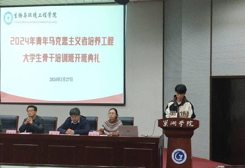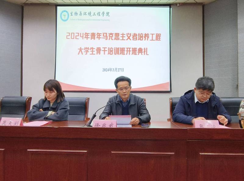 为深入学习贯彻习近平新时代中国特色社会主义思想和党的二十大精神,深入实施青年马克思主义者培养工程,3月27日下午,生环学院在致知楼报告厅举办2024年度“青马工程”学生骨干培训班开班典礼。生环学院党委书记徐兆武、副书记张凌,学院团委书记晁天彩、副书记任梦溪和本期青马工程培训班全体学员参会,开班典礼由晁天彩主持。