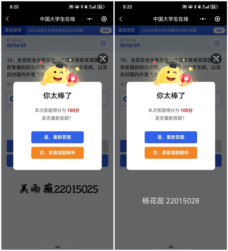 4月10日至4月15日,学院组织全体同学们通过中国大学生在线网站或微信公众号参与答题,普及国家安全知识,进一步增强了同学们国家安全意识和法治意识,推动大家深入理解和准确把握总体国家安全观的丰富内涵和精神实质。
