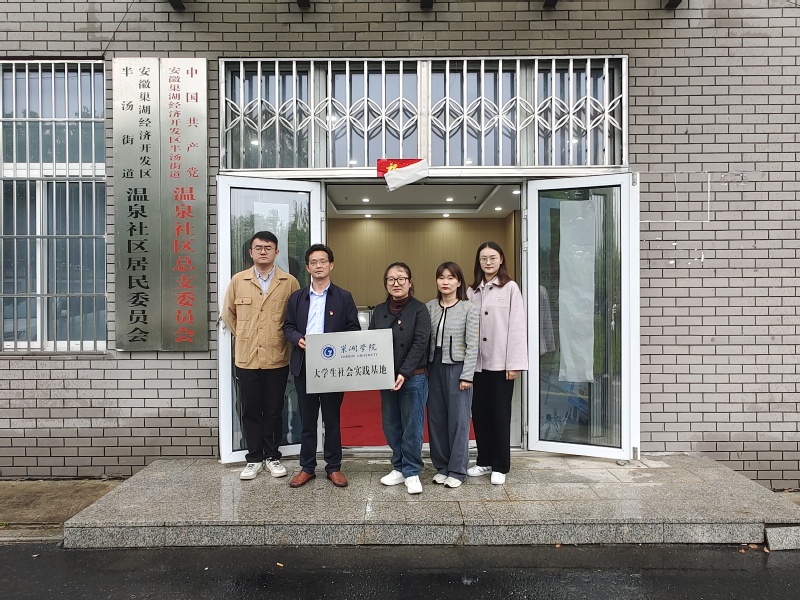 为进一步深化校地合作,落实大学生社区实践计划,构建共青团实践育人新格局,4月17日上午,生环学院党委书记徐兆武、团委书记晁天彩、学生党支部书记潘晨和邢权一行赴半汤街道温泉社区举行大学生社会实践基地签约暨挂牌仪式。安巢经开区温泉社区党总支书记李淼文、居委会副主任程绍政等参加仪式。