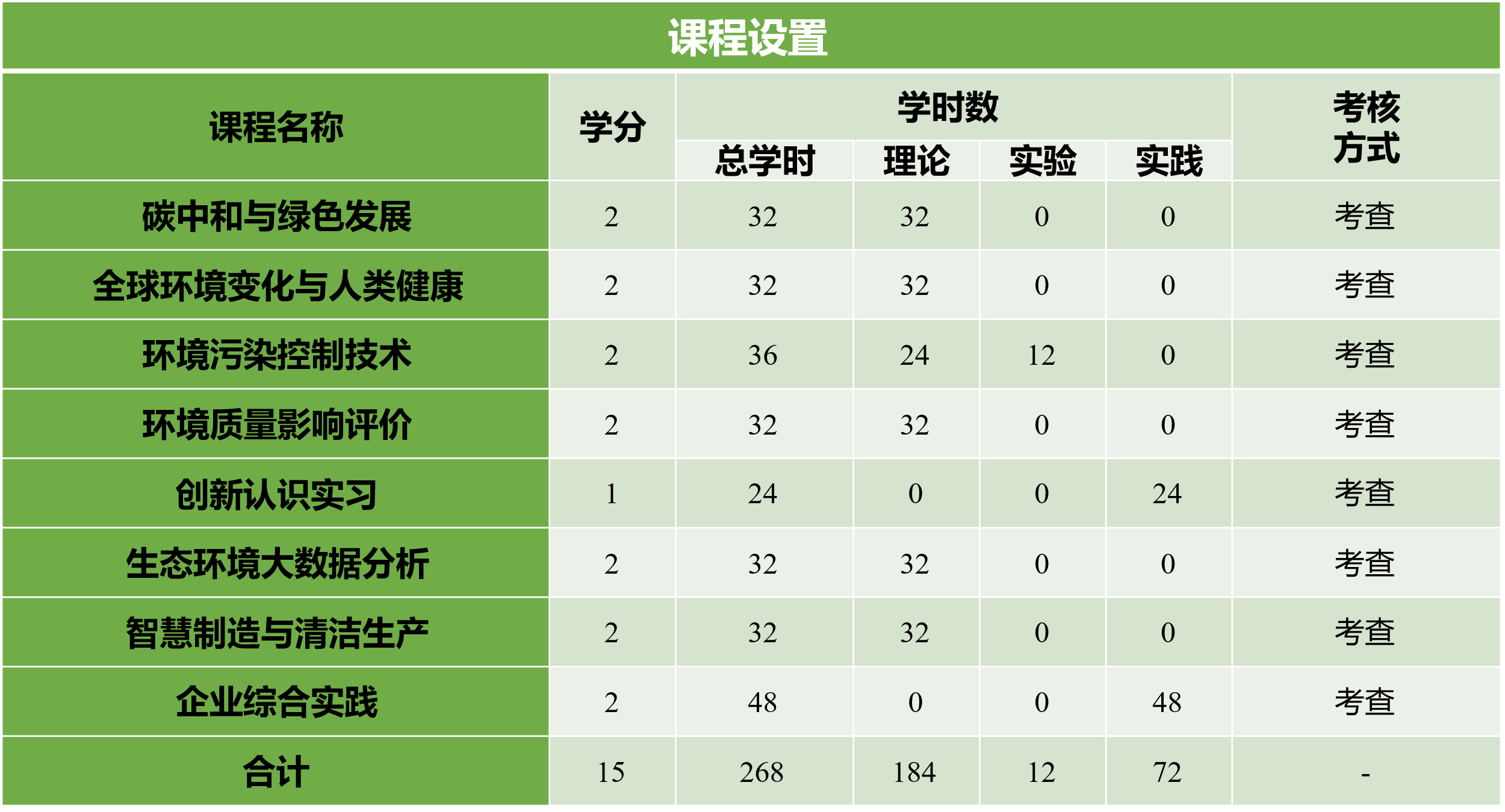 2、通过项目化教学和实践活动,理解践行生态文明思想和绿色发展理念的意义、途径和方法,增强学生自主学习获取智慧环保、碳中和领域国际前沿文献、数据以及发展动态的能力,培养学生求实创新的意识;