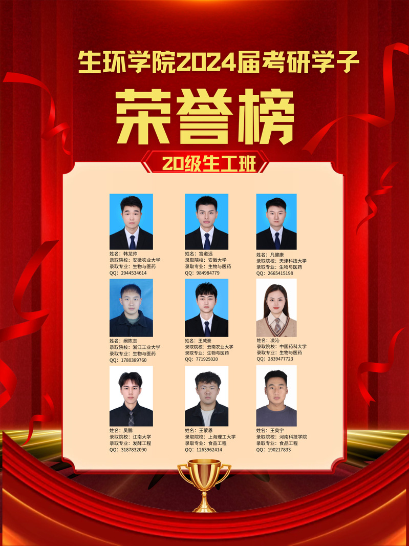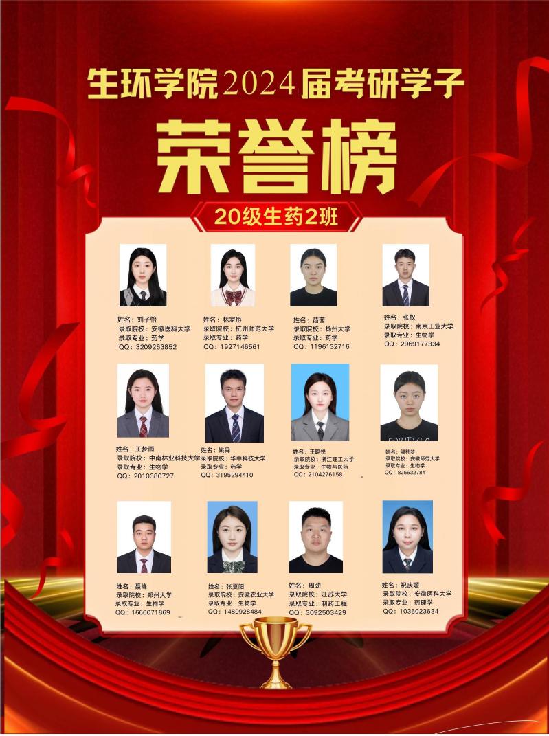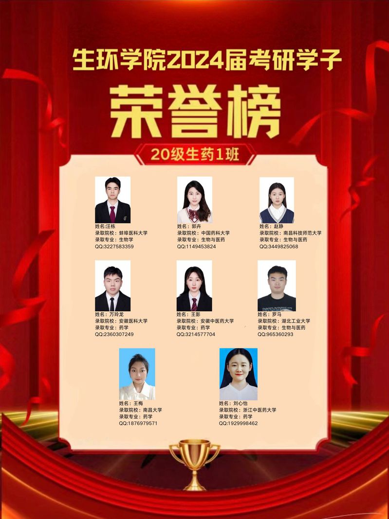 生物与环境工程学院2024届毕业生共122人,考研录取人数共30人,升学率24.59%,升学率位居全校前列。