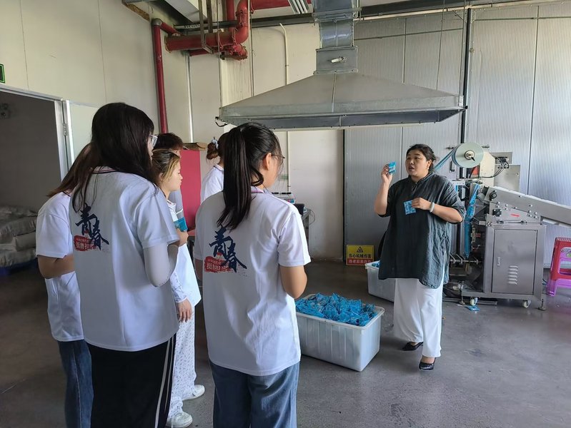7月22日,实践团继续在安徽博润药业有限公司学习交流。总经理黄凤美以板蓝根和皂刺等中草药为例,介绍常用中草药的性状和药效。实践团成员一边学习记录,一边思考提问,双方就药理学知识展开了热烈讨论。
