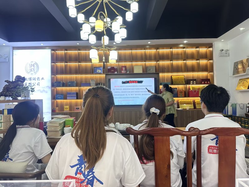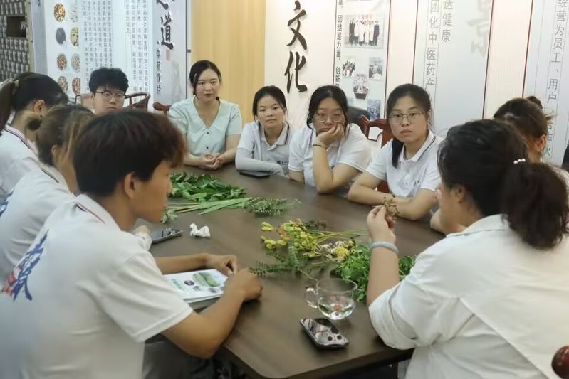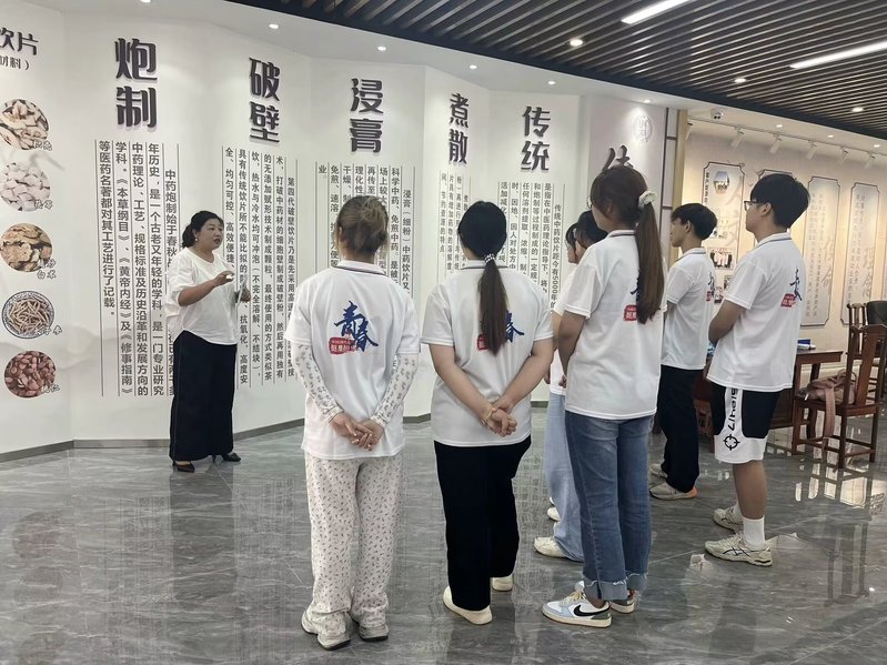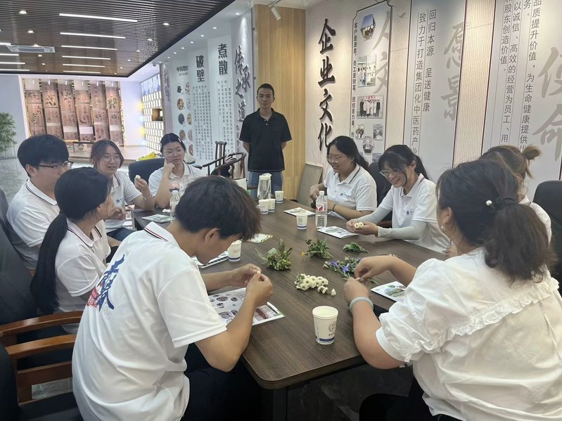 7月21日,实践团师生一行前往烔炀镇安徽博润药业有限公司了解中草药基本知识。公司总经理黄凤美向团队成员介绍了企业基本情况和生活中常见常用中草药的性状、功效等内容,展示了中医药文化中所蕴含的奥秘和神奇之处。她希望团队成员能够体会中医药文化的魅力并充分发挥所学所长,在弘扬中医药文化的道路上砥砺前行。