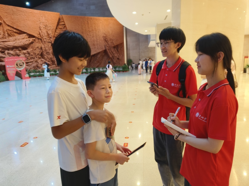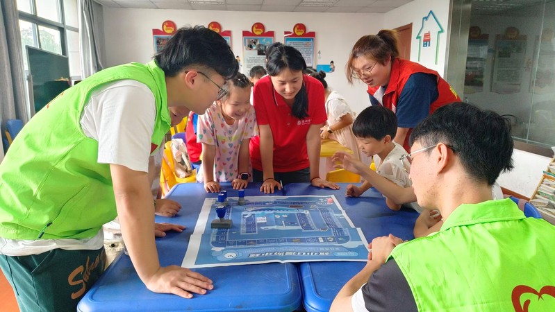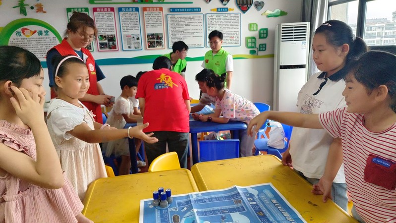 活动第二站,宣讲团来到了岗岭社区实践活动中心,向小朋友们介绍了“两弹一星”的基本概念、发展历程和对国家发展的重大意义。孩子们在轻松愉快的氛围中,对“两弹一星”有了初步的认识和了解。在儿童活动室,志愿者们用爱国主题绘画和趣味的“核”游戏带领小小少年们遨游科技的海洋,激发孩子们对科技探索的兴趣,培养青少年的爱国热情和责任担当,让社区儿童更加深刻地感受到了“两弹一星”精神的魅力。