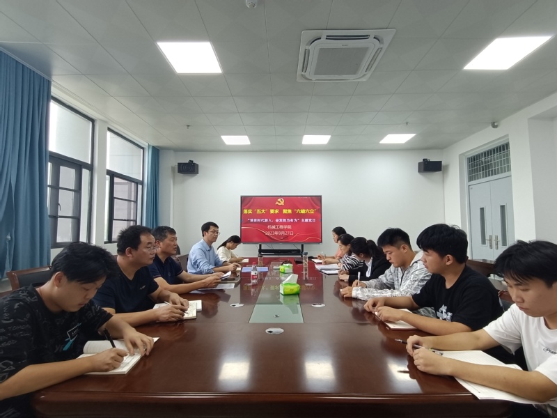 为深入学习贯彻习近平总书记关于教育工作的重要论述和考察安徽重要讲话精神重要指示精神,认真落实省委十一届五次全会打造“三地一区”、建设“七个强省”部署要求,聚焦“六破六立”,推深做实“五大”,不断巩固拓展主题教育成果,2023年9月27日下午,机械工程学院党委组织师生党员代表在崇学楼党员活动开展“培育时代新人,奋发担当作为”主题党日活动,活动由学院党委书记何照泽主持。