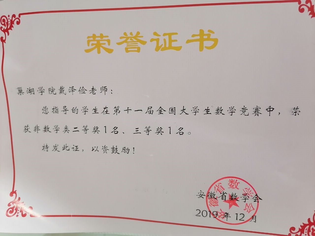 全国大学生数学竞赛非数学类 二等奖、三等奖