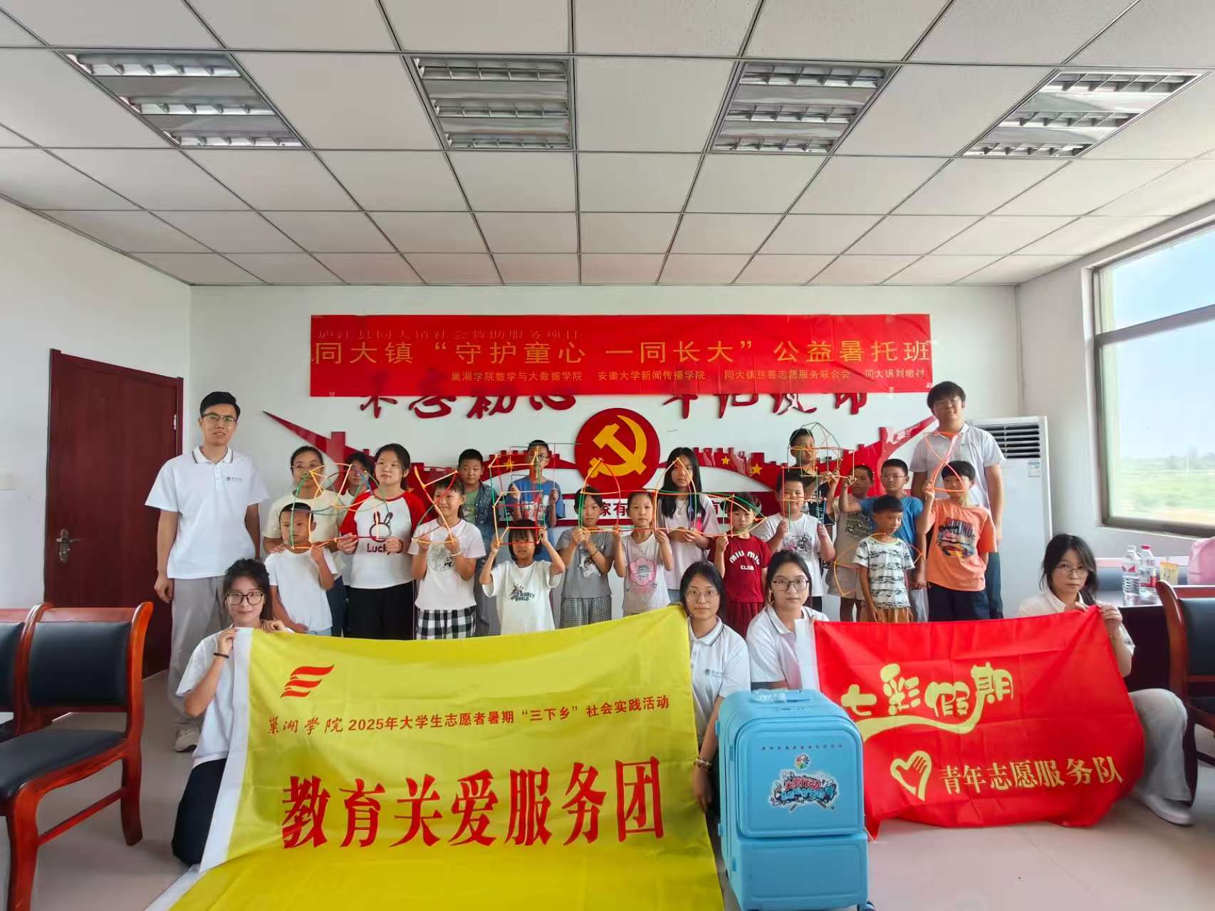 青春逢盛夏,实践正当时。7月11日至7月23日,金年汇官方入口“守护童心 一同长大”七彩假期志愿服务团在指导老师冀祥麟和谢乙莹的带领下,来到庐江县同大镇,以课程滋养童心,以实践扎根乡土,以镜头记录乡韵,开展为期12天的教育关爱行动。