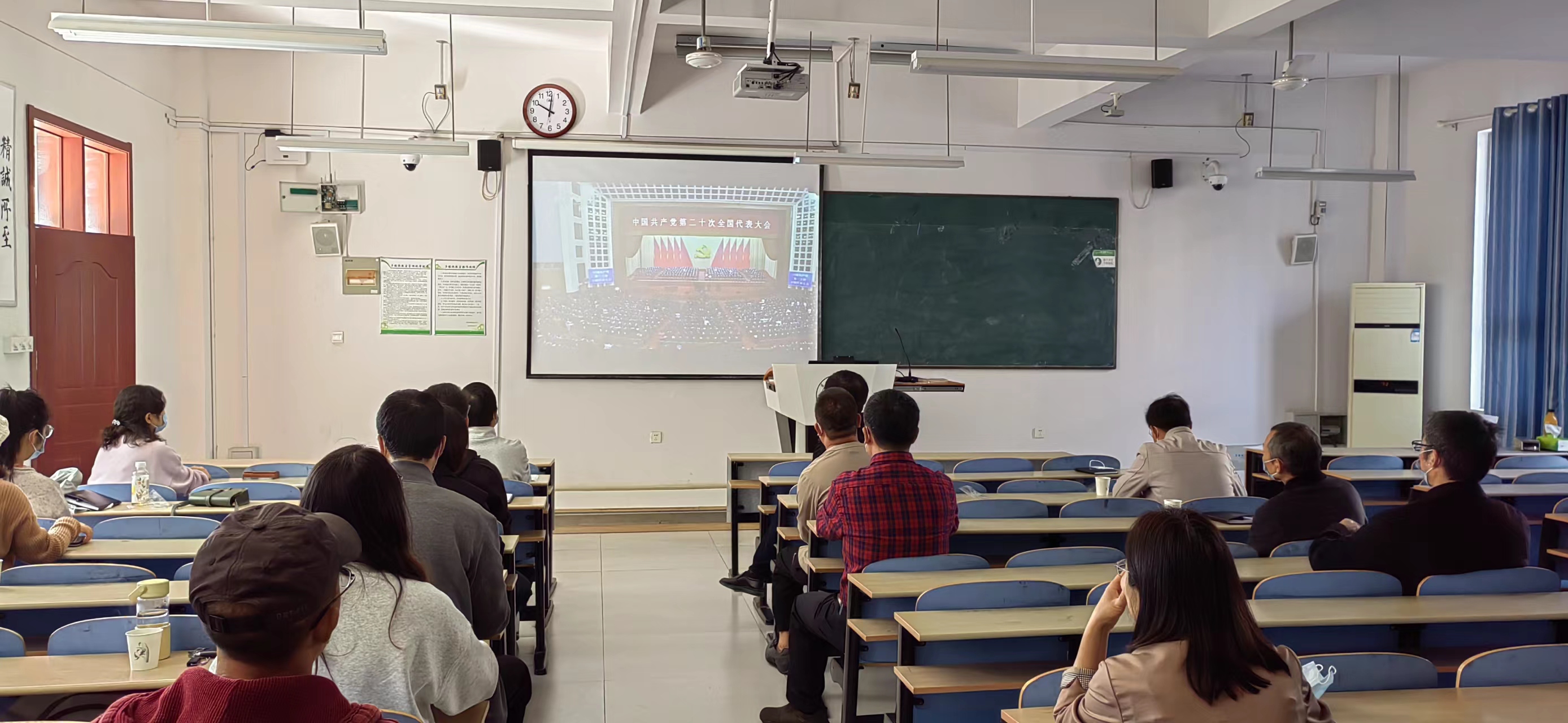 2022年10月16日上午,中国共产党第二十次全国代表大会在北京隆重召开。为深入学习领会党的二十大精神,马克思主义学院党总支周密部署、全面动员,组织教师在慎思楼中303教室集中收看大会直播,认真聆听习近平总书记在中国共产党第二十次全国代表大会上的报告。