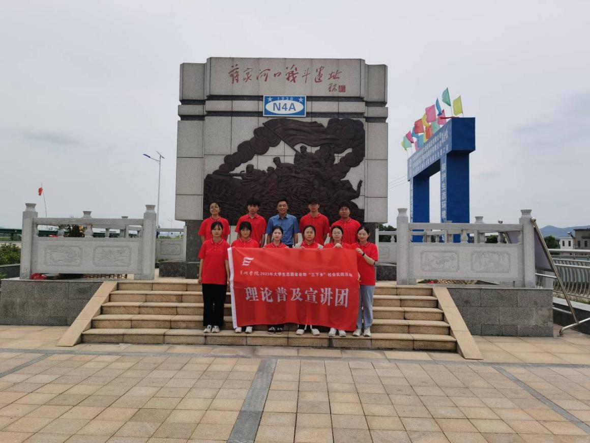 随后,团队来到银屏镇三胜村蒋家河口战斗遗址参观学习。蒋家河口战斗遗址位于巢湖市东南郊。馆外广场,映入眼帘的是一座写着“蒋家河战斗遗址”的纪念碑。展馆以银屏老区的革命历史为背景,重点讲述了“五个一”红色历史。在讲解员的带领下,团队成员们通过观看纪念馆的历史图片,认识到了作为新时代的青年要牢记我们现在的安逸生活是无数的革命先烈用热血,用生命换来的,应该倍加珍惜,决不能因优越的生活条件而遗忘艰苦奋斗的精神,应时刻谨记先辈们的辛劳,牢守革命成果。