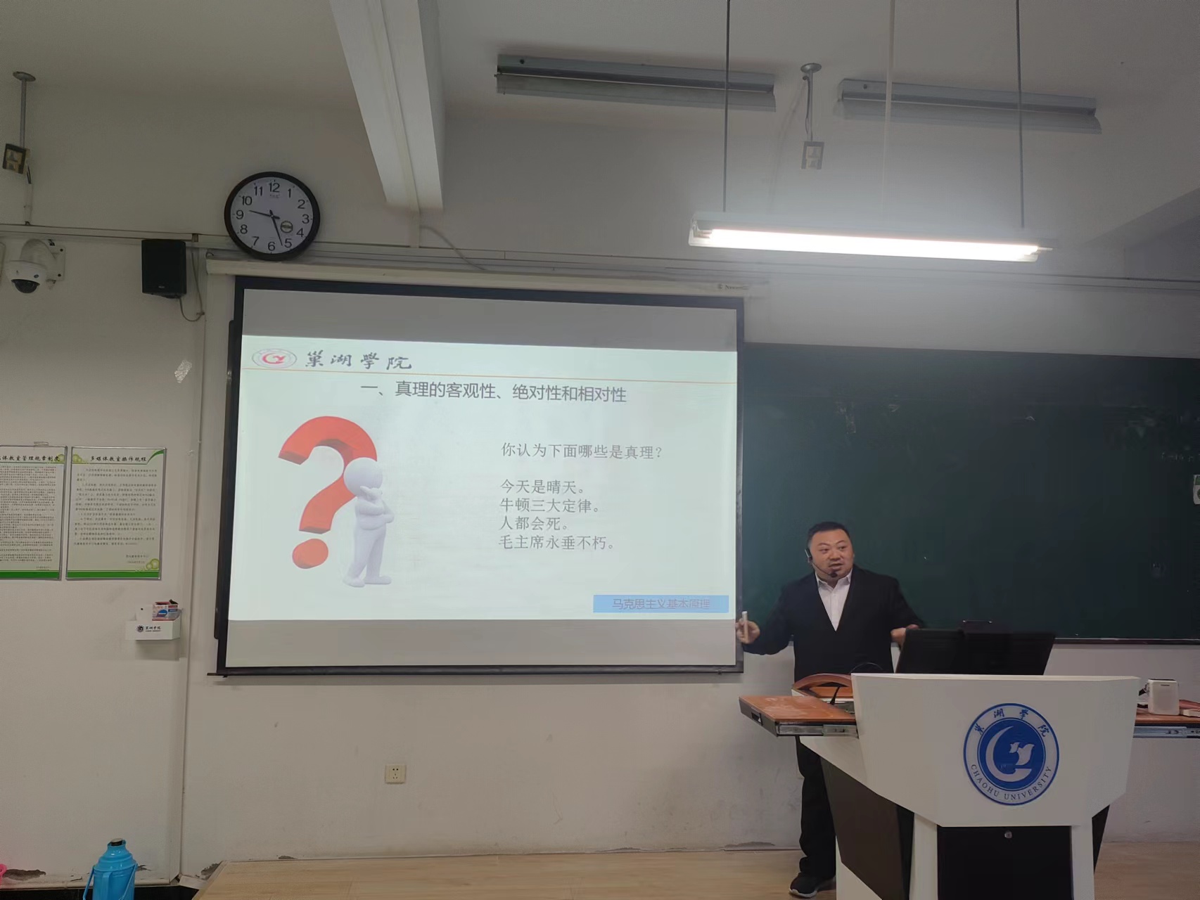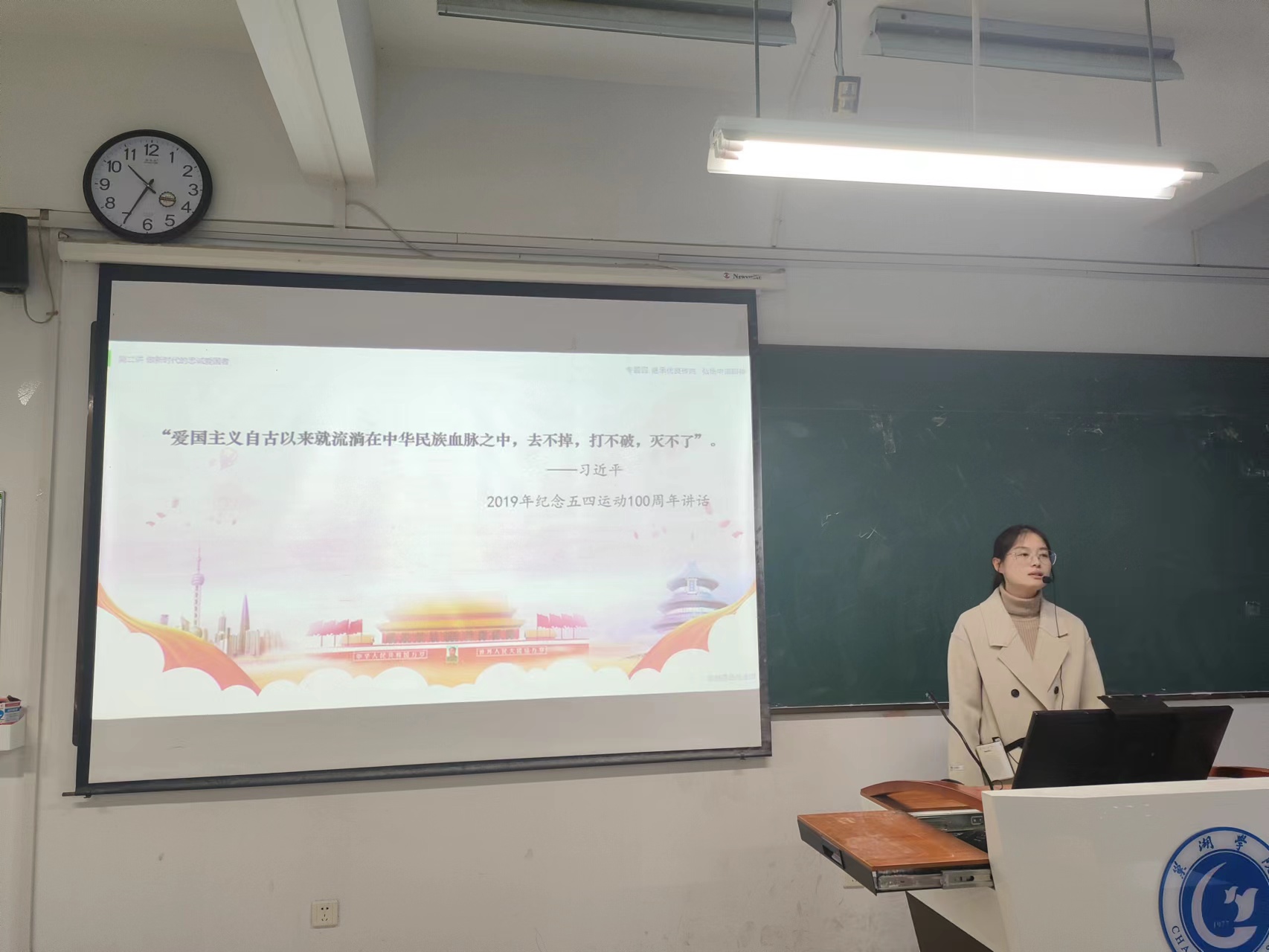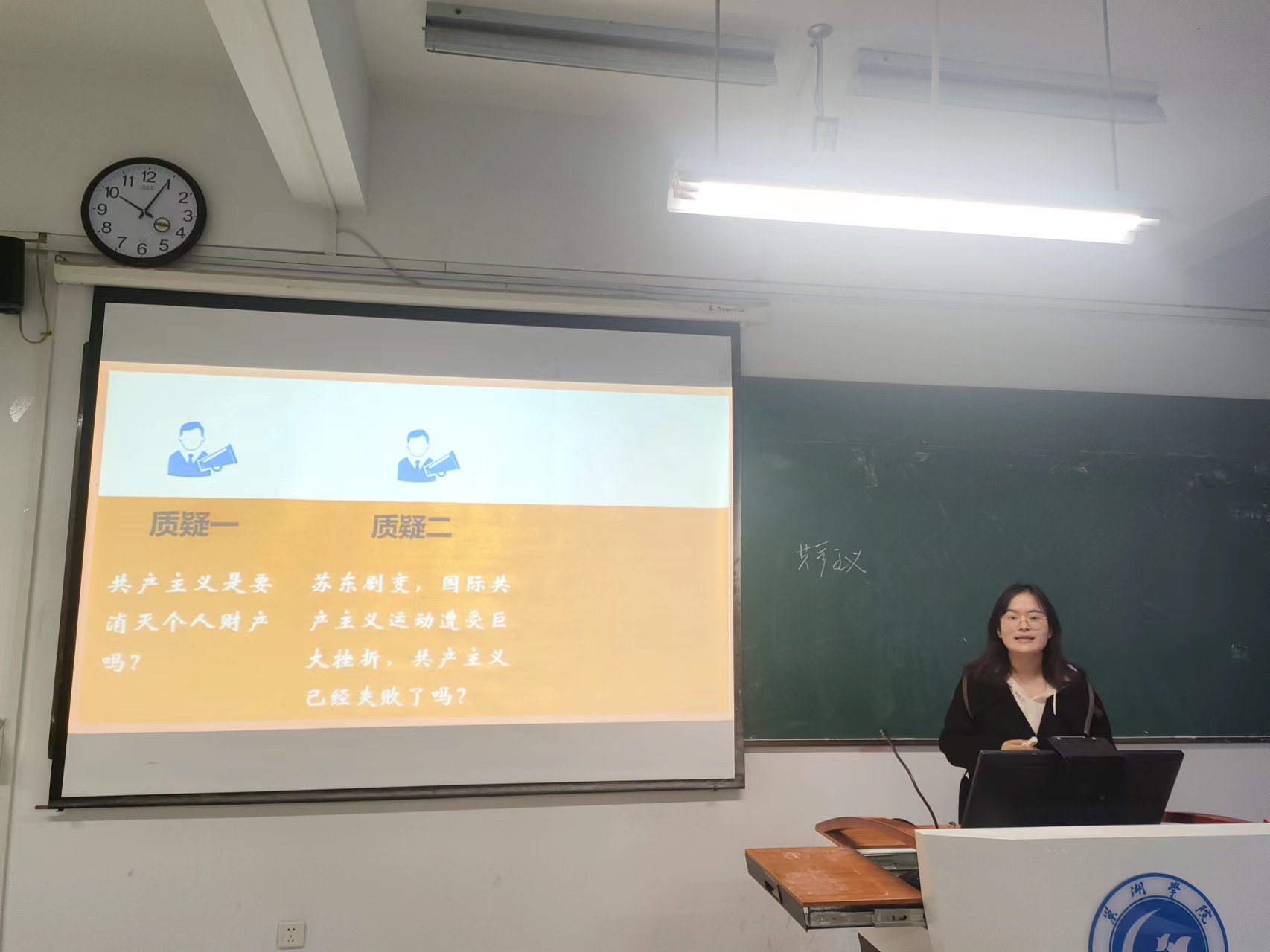 9位青年教师分别选取了“习近平新时代中国特色社会主义思想概论”“马克思主义基本原理”“中国近现代史纲要”“思想道德与法治”课程的教学内容进行讲授,其中丁贝贝老师讲授专题“中国式现代化是人口规模巨大的现代化”,宋玉荃老师讲授专题“中国共产党为什么能赢得解放战争的胜利”,付加佳老师讲授专题“如何理解马克思主义的科学性”,王海燕老师讲授专题“共产主义的科学内涵”,吴卿老师讲授专题“真理的客观性、绝对性、相对性”,王静老师讲授专题“做新时代忠诚的爱国者”,姚钰婷老师讲授专题“英雄是民族最闪亮的坐标”,张秀娟老师讲授专题“实践的本质”,张智慧老师讲授专题“树立正确的马克思主义婚恋观”。青年教师们精神饱满,各显风采,通过思路清晰的教学理念和富有特色的教学组织形式,启迪学生思维,充分展示了扎实的专业基础和教学功底。