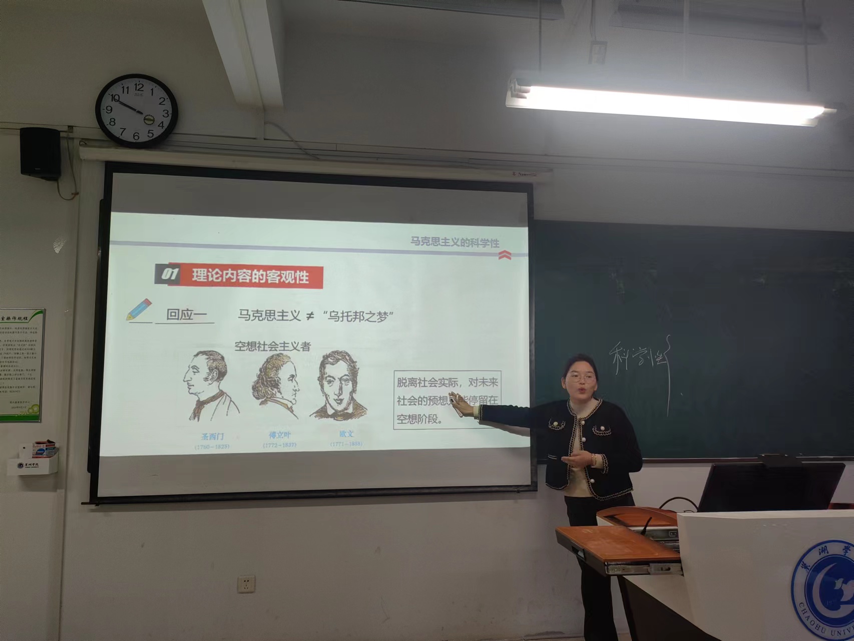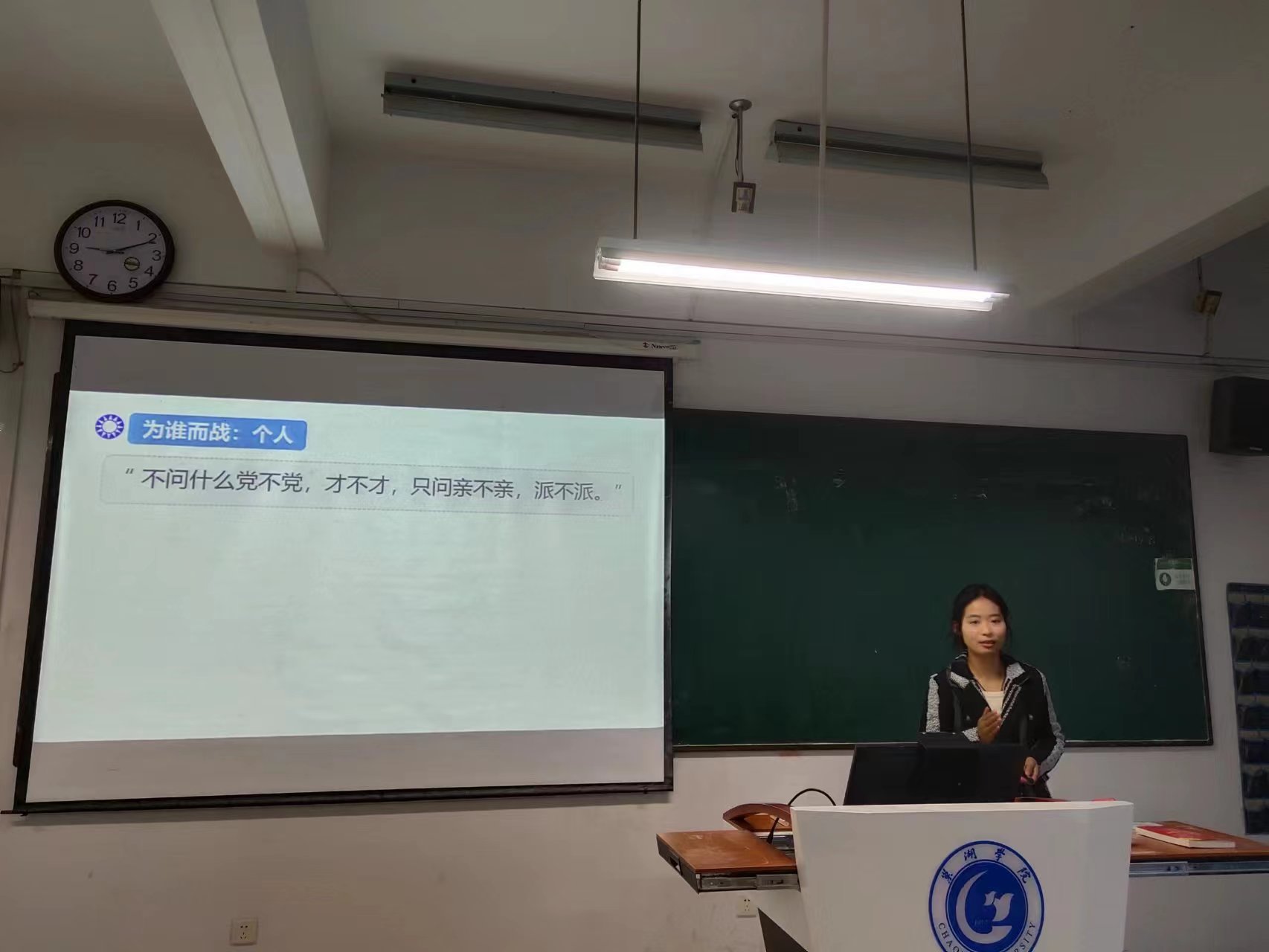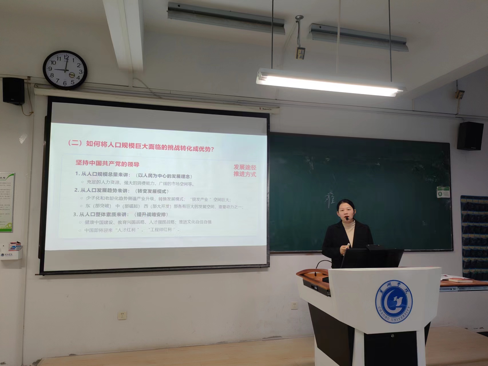 9位青年教师分别选取了“习近平新时代中国特色社会主义思想概论”“马克思主义基本原理”“中国近现代史纲要”“思想道德与法治”课程的教学内容进行讲授,其中丁贝贝老师讲授专题“中国式现代化是人口规模巨大的现代化”,宋玉荃老师讲授专题“中国共产党为什么能赢得解放战争的胜利”,付加佳老师讲授专题“如何理解马克思主义的科学性”,王海燕老师讲授专题“共产主义的科学内涵”,吴卿老师讲授专题“真理的客观性、绝对性、相对性”,王静老师讲授专题“做新时代忠诚的爱国者”,姚钰婷老师讲授专题“英雄是民族最闪亮的坐标”,张秀娟老师讲授专题“实践的本质”,张智慧老师讲授专题“树立正确的马克思主义婚恋观”。青年教师们精神饱满,各显风采,通过思路清晰的教学理念和富有特色的教学组织形式,启迪学生思维,充分展示了扎实的专业基础和教学功底。