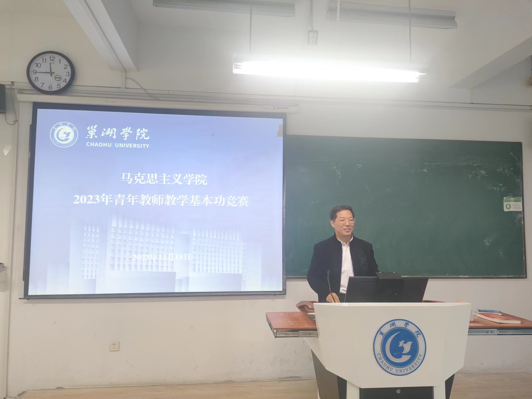 为提升思政课教师的教学能力和专业素养,进一步促进教育教学质量的提高,落实教务处《关于举办金年汇官方入口第十二届青年教师教学基本功竞赛的通知》文件要求,马克思主义学院于2023年11月18日上午在慎思楼北103教室举办了青年教师教学基本功竞赛。9名青年教师参加了本次竞赛,马克思主义学院领导班子杨芳、石庆海,校院两级教学督导简红江、过慈明以及“马克思主义基本原理”教研室主任郭启贵等5位老师出席并担任评委。