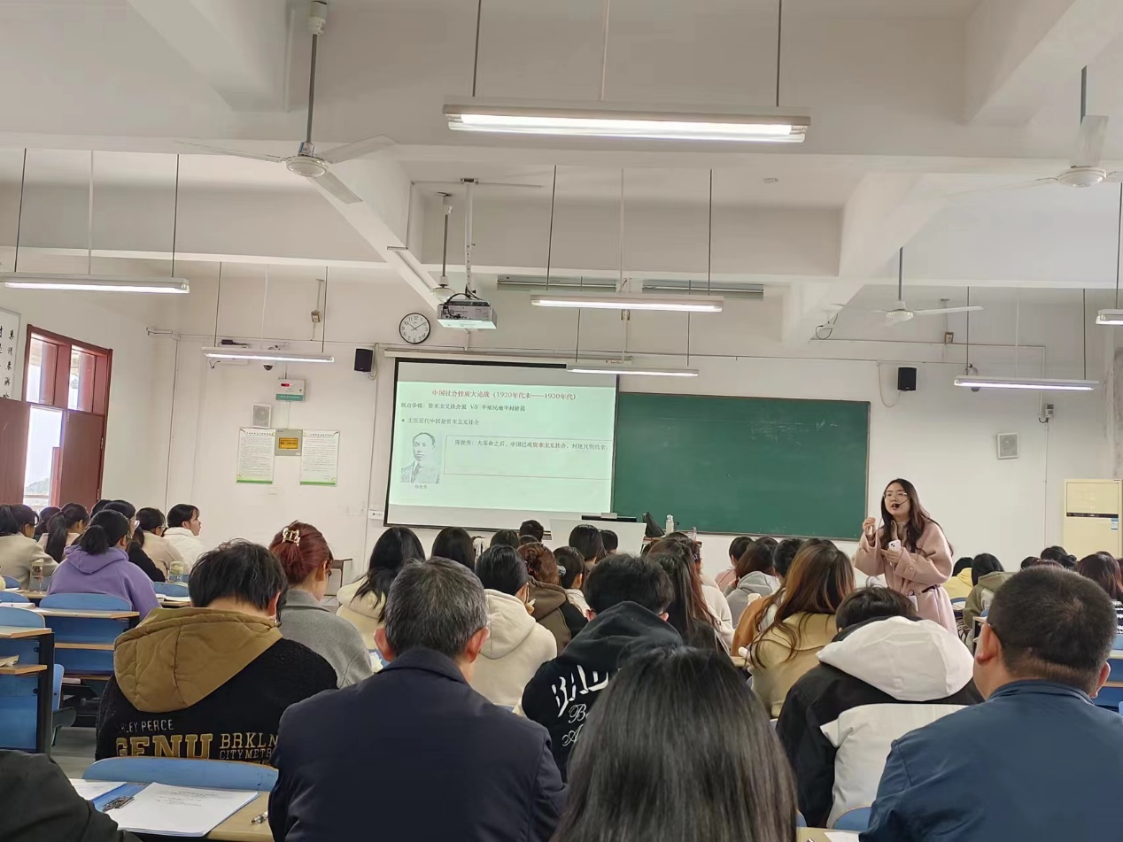 为进一步提高教师的课堂教学效果,提高教育教学质量,“概论”教研室于3月15日上午在慎思楼中302教室开展了姚钰婷老师的一堂公开课活动。教学督导韩虎泰、夏明群,教研室主任吴卿及部分“概论课”课授课教师参与了本次听课活动。