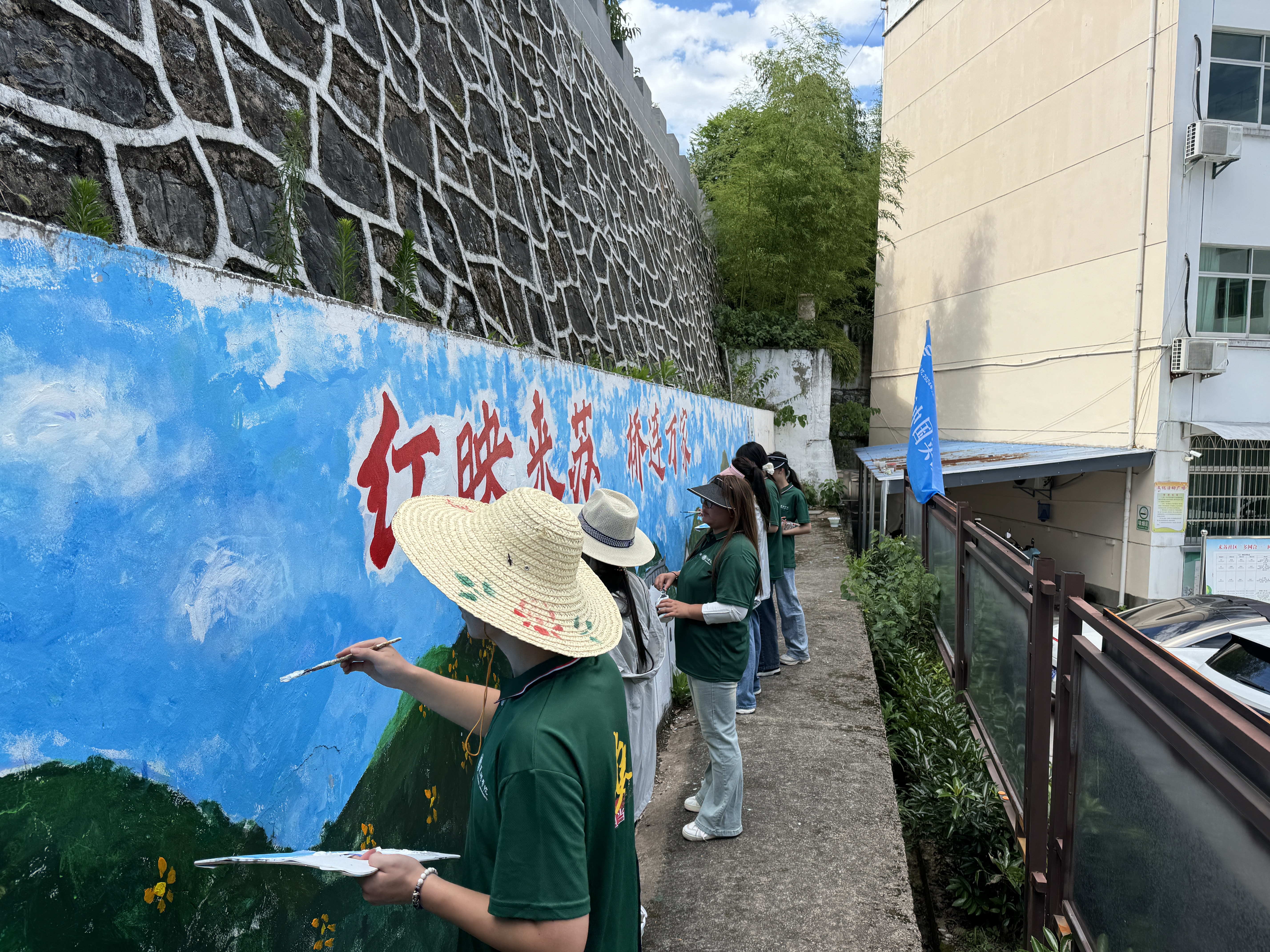 在接下来的几天里,志愿者们顶着烈日、冒着酷暑,一丝不苟地完成一幅墙绘作品的创作。志愿者们巧妙地将当地的风俗特色、文化元素与现代文化潮流相结合,创作出既有地方特色又有时代感的精美画作,仿佛讲述着社区的历史和故事,传递着积极向上的文化精神。