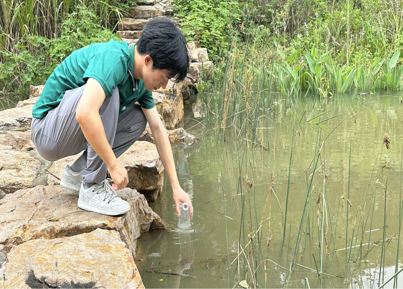 7月17日下午,在湿地管理中心工作人员的带领下,实践团来到了指定采样点。在工作人员的指导下,实践团成员高效地完成了水样采集工作,并将采集后的水样存放于容器中,送往学校相关专业进行水质检测与分析。通过对水样的总氮、总磷、氨氮等多项指标进行检测,将湿地水质以数据的形式呈现出来。在检测结束后,实践团成员们通过查阅文献、相互讨论,认真分析了近年来湿地水质的变化及原因,并为湿地保护建言献策,希望能为当地生态文明建设贡献大学生力量。