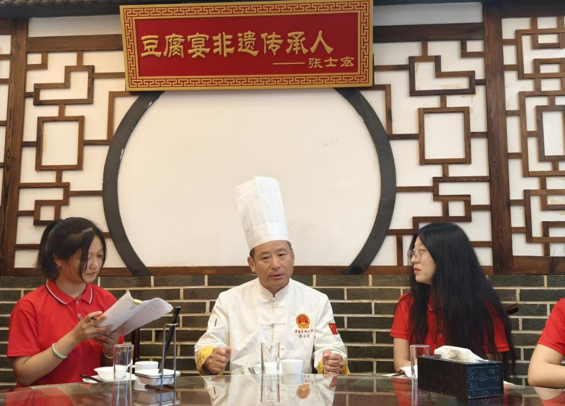 豆腐宴非遗传承人张士宏向团队成员讲述自己与豆腐的情缘