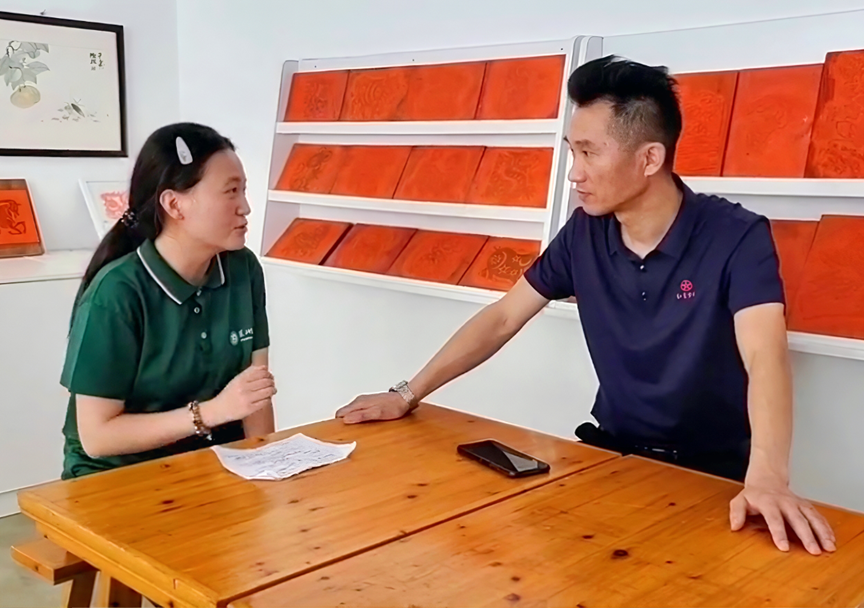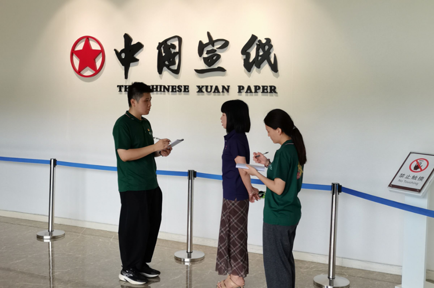 随后,实践团队专访了宣纸文化园管理员丁女士。她深入分享了园区在弘扬国粹、推动地方经济上的贡献,以及作为宣纸艺术展示窗口和文化传承桥梁的重要角色。面对未来,丁女士表示园区将积极创新,融合科技与提升体验,吸引更多年轻人参与宣纸文化的传承。她表达了对传统文化的深厚情感与坚定信念,坚信通过不懈努力,能让这份文化遗产在当代社会更加璀璨夺目,成为连接世界、传递文化价值的桥梁。
