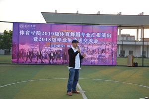 5月30日晚6:30,由体育学院主办的2019级体育舞蹈专业汇报演出暨2018级毕业生欢送交流会在五人制足球场正式拉开帷幕。2018级体育舞蹈专选毕业班同学们、2019级和2020级体育舞蹈专选班同学们以及其他师生员工,部分毕业生通过线上平台参与此次欢送交流会。体育学院院长姚磊,体育学院副院长赵胜国出席本场专业汇报演出交流会,交流会由体育舞蹈专选班丁源源老师主持。
