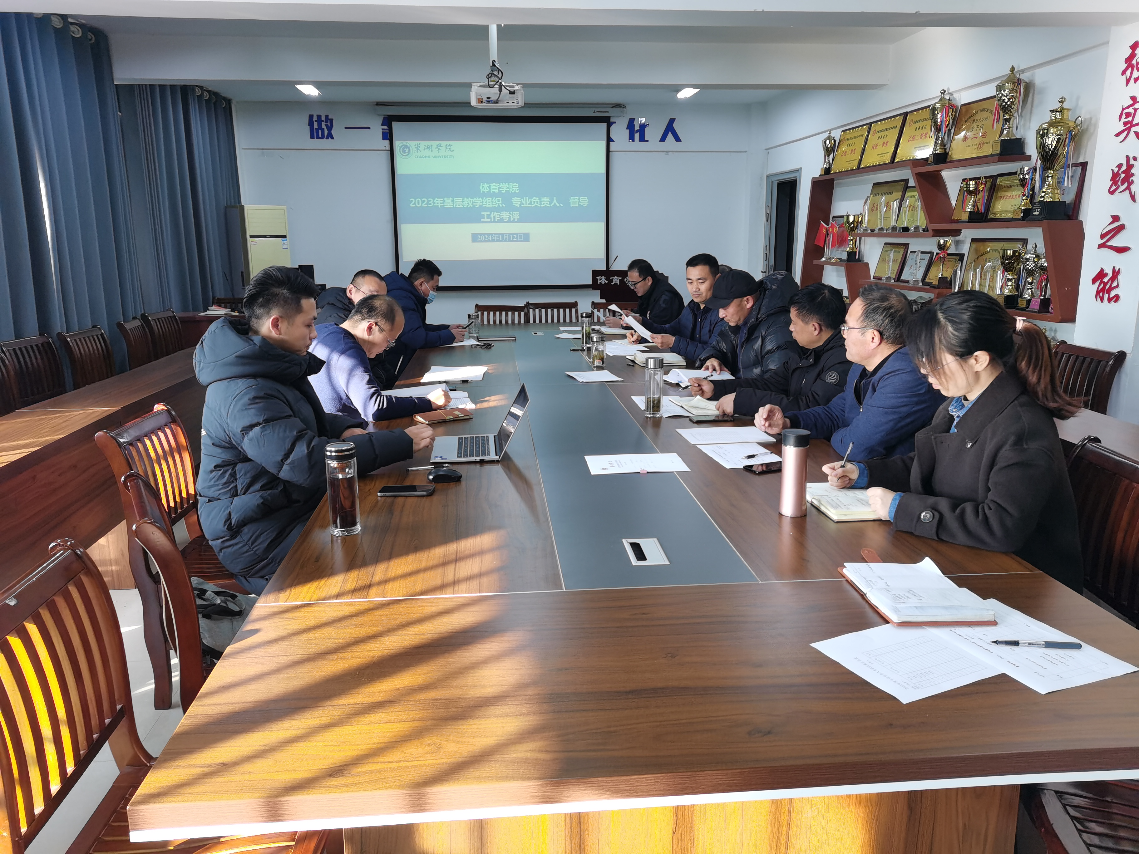 2024年1月12日下午3点,体育学院在学院会议室召开2023年度基层教学组织、专业负责人和教学督导工作考评会。院领导班子、教学指导委员会成员、基层教学组织负责人、专业负责人、院教学督导和部分教师参加了会议,会议由体育学院副院长杨叶红主持。
