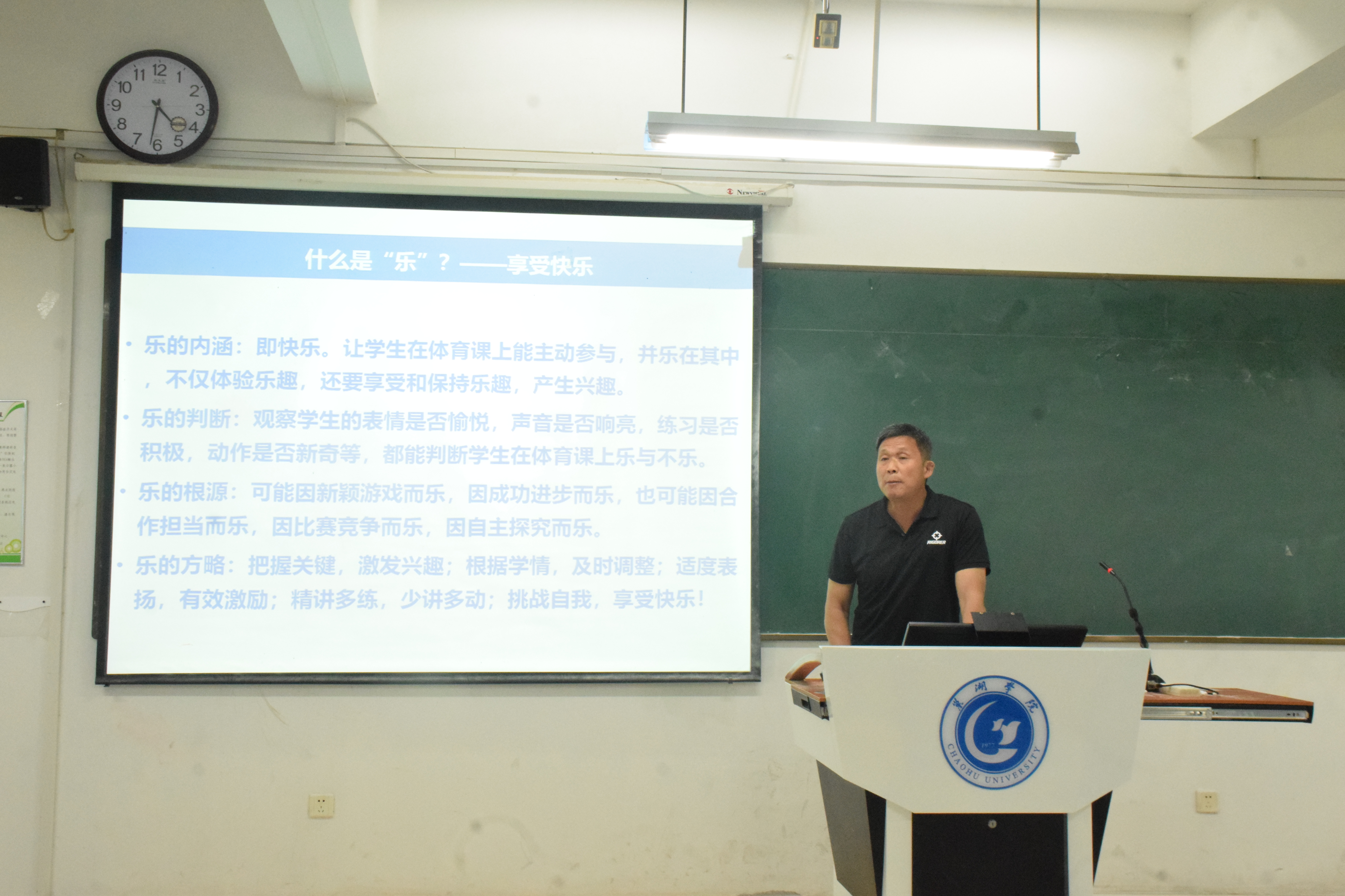 为推进高校与中学协同育人机制构建,落实体育教育专业专业人才培养目标,2024年5月8日下午14:00,在慎思楼北103教室体育学院组织开展中学课程与教学系列讲座活动,体育教育训练系执行主任周雪华主持本次活动,2021级体育教育专业184名学生参与活动。