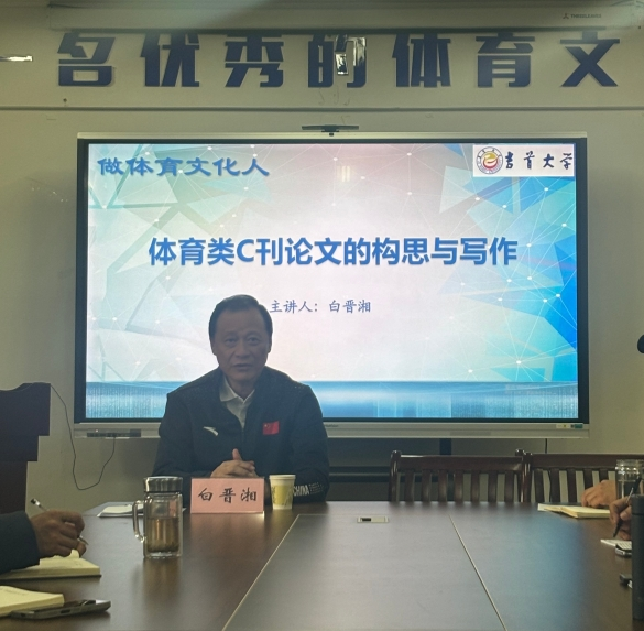为了提高我教师科研能力,加强学术交流,拓宽学术视野,提升教育教学水平,113上午,特邀请吉首大学白晋湘教授在学院会议室举办了题为《体育类C刊论文的构思与写作》的学术讲座。体育学院全体教师参加,讲座由体育学院院长赵胜国主持