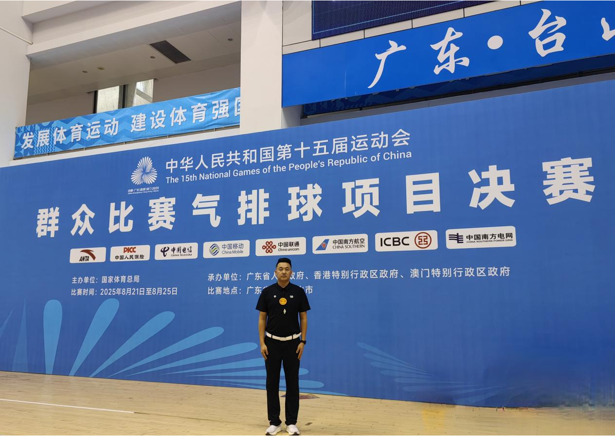 8月21日至25日,中华人民共和国第十五届运动会群众比赛气排球项目决赛在广东台山新宁体育馆成功举办。本次赛事由国家体育总局主办,设男子青年组、女子青年组、男子中年组、女子中年组、男子老将组、女子老将组和男女混合组共七个组别,吸引了来自全国的63支队伍参赛,共进行了169场激烈角逐。体育学院教师周海魁(国家级气排球裁判员)受国家体育总局排球运动管理中心选派,担任本次比赛的裁判工作。
