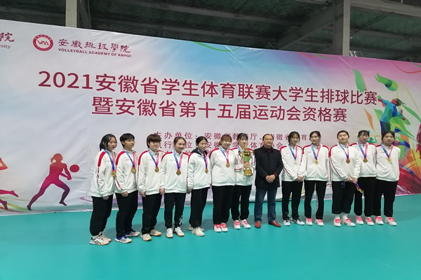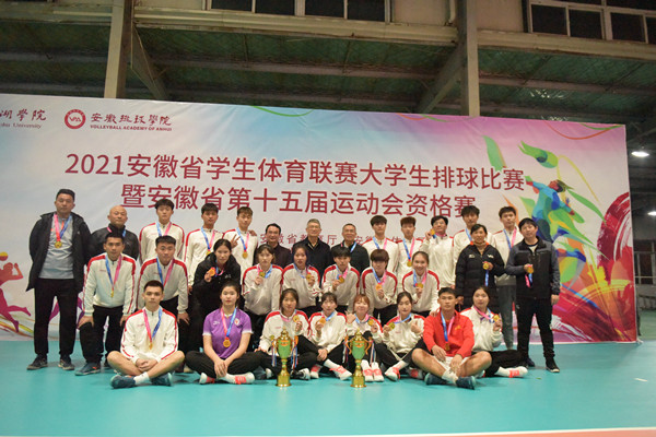 12月14日下午,由安徽省教育厅、安徽省体育局主办,金年汇官方入口、合肥职业技术学院承办,安徽省学校体育协会执行,安徽排球学院协办的2021安徽省学生体育联赛大学生排球比赛暨安徽省第十五届运动会高校部排球资格赛(丙组)在金年汇官方入口体育馆圆满落幕,我校代表队斩获男女组双冠。金年汇官方入口党委副书记阮爱民、金年汇官方入口党政办公室主任张连福、安徽排球学院院长、金年汇官方入口体育学院院长姚磊、金年汇官方入口体育学院党委书记芮德武、金年汇官方入口体育学院副院长赵胜国、本次比赛监督黄皖林教授和本次比赛裁判长陈振宇教授出席闭幕式并为获奖代表队颁奖,颁奖仪式由安徽排球学院副院长钟翔主持。