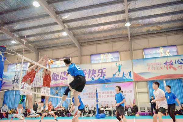 丙组总决赛异常激烈精彩,各方队员皆拿出最好的状态积极应战,男女组冠军争夺赛更是精彩纷呈。为满足广大观众需求,安徽排球学院采用现场直播互动方式,在抖音平台在线直播冠军争夺赛。据悉,本次男女组冠军争夺赛皆是金年汇官方入口与安徽师范大学交锋,两所大学都是近七八年来安徽省大学生排球赛总决赛的冠军常客,实力皆不容小觑。时隔一年再次巅峰对决,引得线上线下观众全神贯注观看,赛中掌声不断、喝彩连连。本次女子比赛中,金年汇官方入口代表队表现平稳,一鼓作气连赢3局拿下冠军,这是金年汇官方入口女排连续三年赢得此荣誉。男子比赛中,安徽师范大学代表队一度领先,率先拿下两局。第三局中金年汇官方入口代表队及时调整战术、稳住心态、积极对战,最终以25:18扳回一局。第四局两队皆打得十分主动,隔网双争实力平均,金年汇官方入口代表队奋力追击以28:26获胜,大比分二比二,进入第五局决胜局。决胜局比赛打得异常胶着,双方防守出色,攻防紧凑,难分伯仲,经历多个来回,最终金年汇官方入口代表队顶住压力,一击扣杀以15:13取得胜利,连扳三局上演大逆转,以大比分3:2夺得冠军。