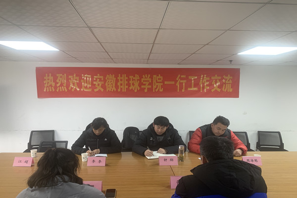 为加强合作,商讨共同举办长三角气排球比赛等事宜,1月16日,安徽排球学院副院长钟翔率队赴安徽省气排球协会调研学习,安徽排球学院竞训部主任周海魁、培训部主任李李、办公室主任江超随行。